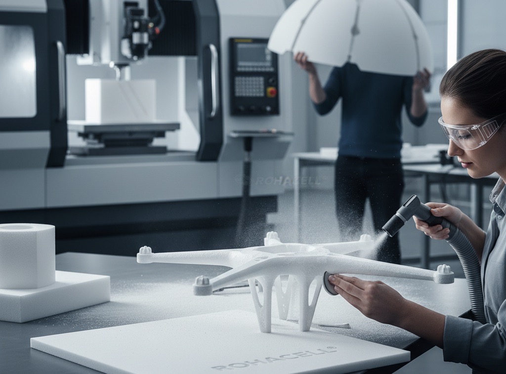ROHACELL® offers several properties that make it outstanding for prototype development. The material is dimensionally stable with no warp or bow, ensuring that machined prototypes maintain their intended geometry over time. The fine, uniform cell structure allows for easy finishing and the creation of smooth surfaces suitable for evaluation models and presentation pieces.